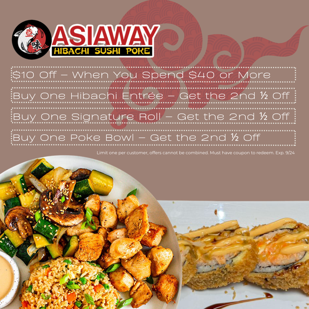 You’re already hungry. Might as well save some $$$! Let us send you a coupon to get $10 off $40 OR BOGO 1/2 off signature rolls, hibachi, or poke bowls!